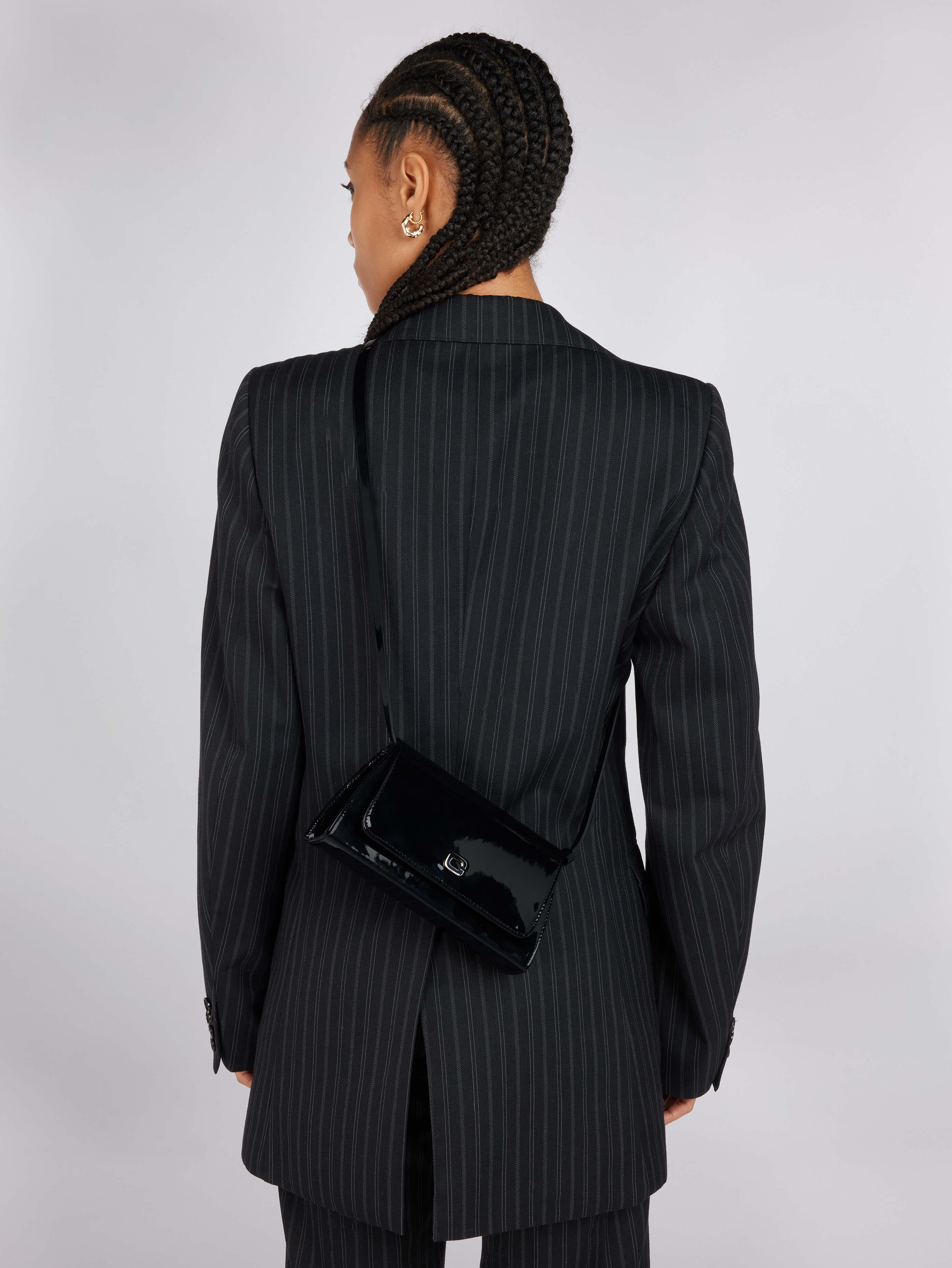 Black patent leather shoulder bag